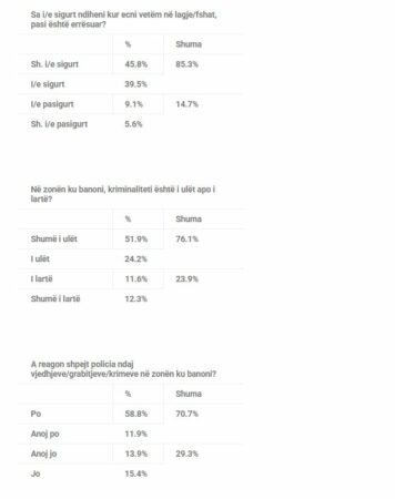 Me rastin e 113-vjetorit të themelimit të Policisë së Shtetit Shqiptar, QENDRA AGENDA zhvilloi një sondazh opinioni për sigurinë e shtetasve dhe punën e Policisë së Shtetit. Linku i pyetësorit u shpërnda me SMS krejt të rastësishme. Plot 1187 banorë të rritur nga i gjithë territori i vendit e plotësuan pyetësorin, duke realizuar kështu një kampion me marzh gabimi statistikor prej 2.9%, maksimumi. Shihni më poshtë rezultatet e sondazhit.