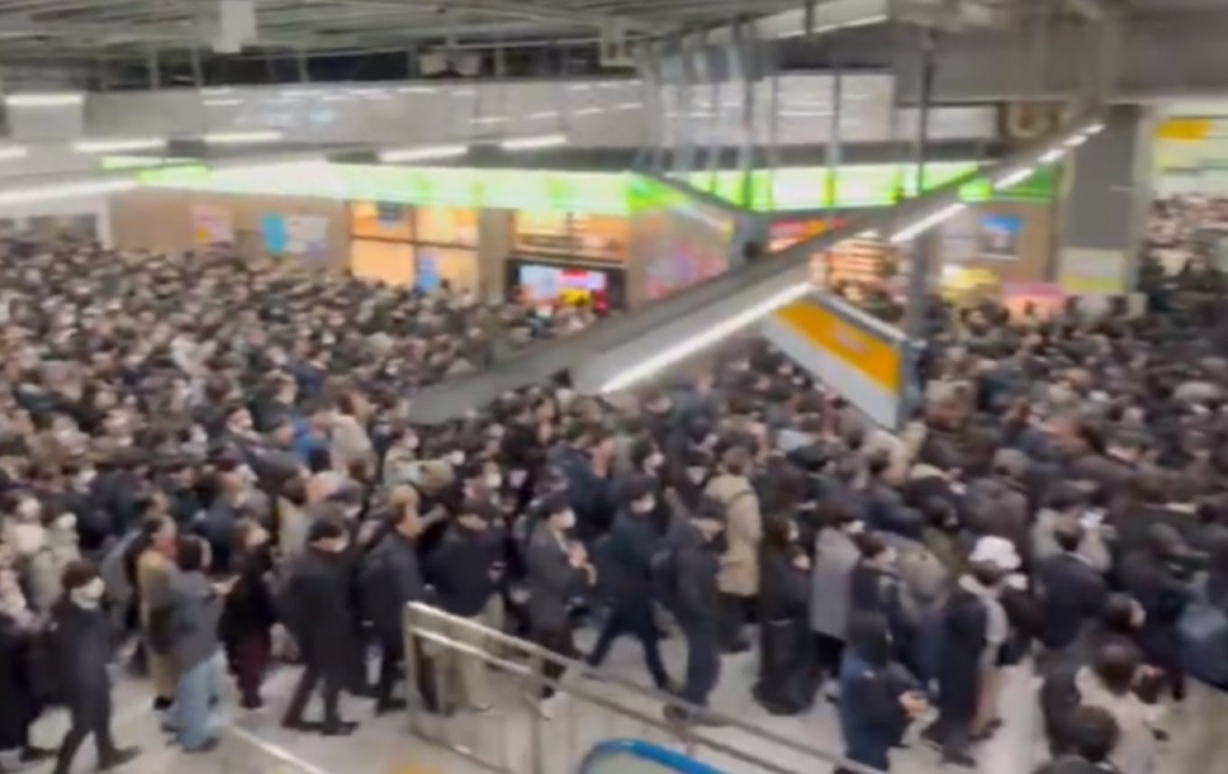 • JR East: Power trouble = commuters stuck with nowhere to go🇯🇵 Absolute chaos during rush hour. This is what… pic.twitter.com/Q5XgWPyipS