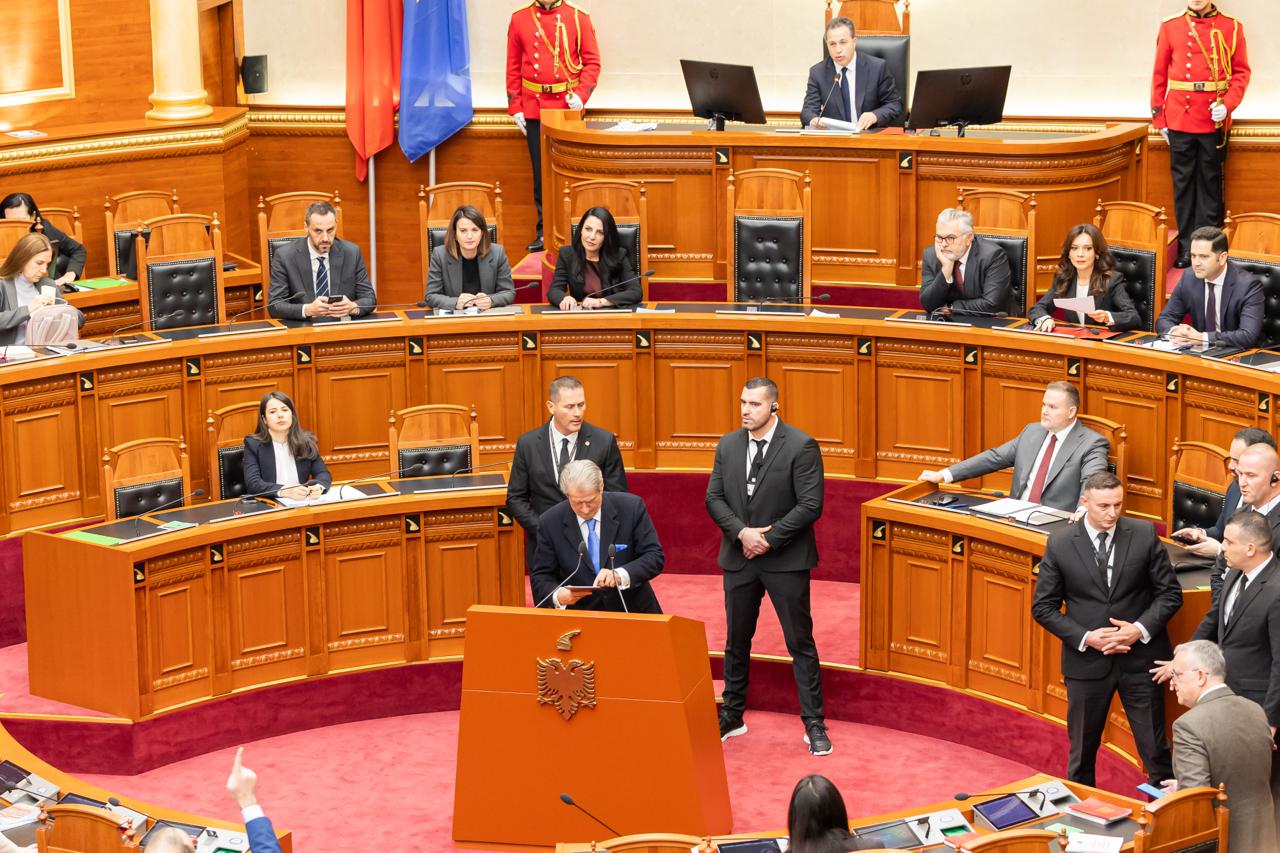 Mes zhurmës dhe mbivendosjes së zërit, Niko Peleshi arriti që të mbante fjalën si kreu i Kuvendit, ndërsa nga grupet Parlamentare foli fillimisht Tedi Blushi nga Partia e Lirisë. Ai ripërsëriti kërkesën e kolegëve të opozitës.