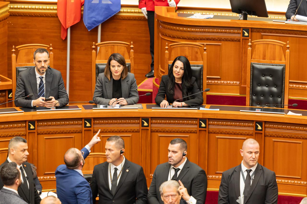Mes zhurmës dhe mbivendosjes së zërit, Niko Peleshi arriti që të mbante fjalën si kreu i Kuvendit, ndërsa nga grupet Parlamentare foli fillimisht Tedi Blushi nga Partia e Lirisë. Ai ripërsëriti kërkesën e kolegëve të opozitës.