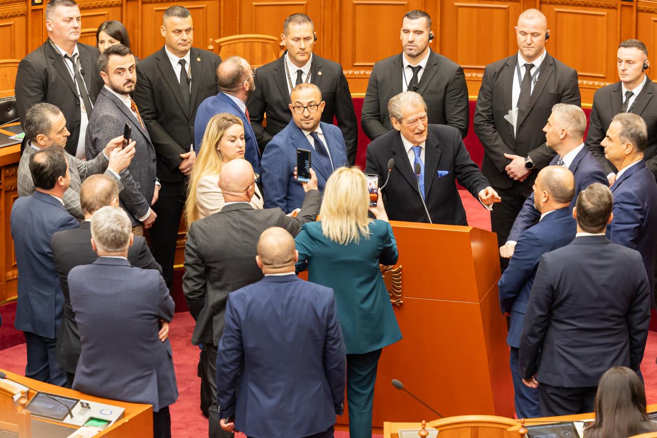 Mes zhurmës dhe mbivendosjes së zërit, Niko Peleshi arriti që të mbante fjalën si kreu i Kuvendit, ndërsa nga grupet Parlamentare foli fillimisht Tedi Blushi nga Partia e Lirisë. Ai ripërsëriti kërkesën e kolegëve të opozitës.