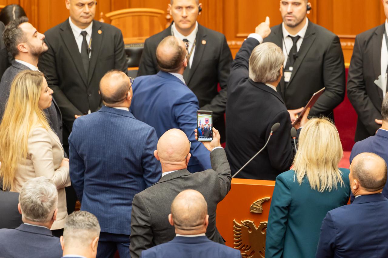 FOTOT/ Berisha bën kameramanin me iPad në dorë në Kuvend, deputetët e PD bllokojnë foltoren, ç’ndodhi në 20 minuta seancë ‘blic’
