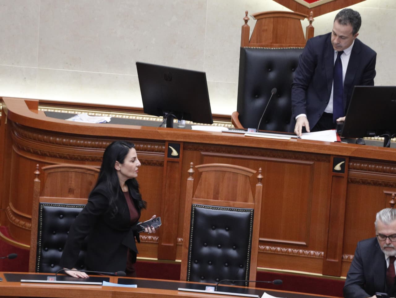 Kjo pasi deputetë e PD me të mbërritur në sallë, ‘fjalën’ zgjodhën që ta marrin duke bllokuar foltoren dhe duke mos lejuar që të zhvillohej një seancë normale, ndërsa Sali Berisha me iPad në dorë transmetonte ‘live’ situatën në rrjetet e tij sociale. Kërkesa e tyre ishte që prezente në sallë të mos ishte Belinda Balluku.
