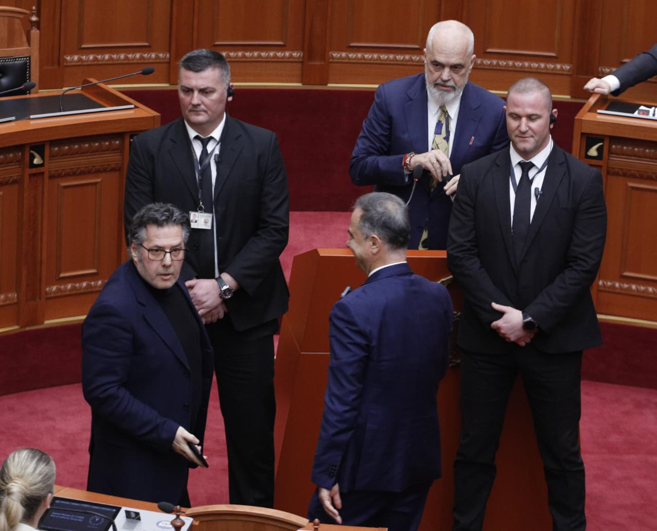 Para se të merrte fjalën, sikurse duket në fotot e shkrepura nga LSA, Rama përshëndeti opozitën me dy gishta, ndërsa në foltore iu afruan deputetët e opozitës.