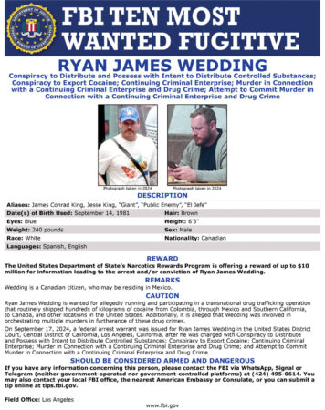 Drejtori i FBI-së, Kash Patel, e krahasoi Wedding me bosët famëkeq të drogës Pablo Escobar dhe Joaquin “El Chapo” Guzman. Përveç akuzave në SHBA, Wedding kërkohet edhe nga autoritetet kanadeze për akuza të veçanta dhe besohet se ka pasur mbështetje nga karteli Sinaloa në Meksikë.