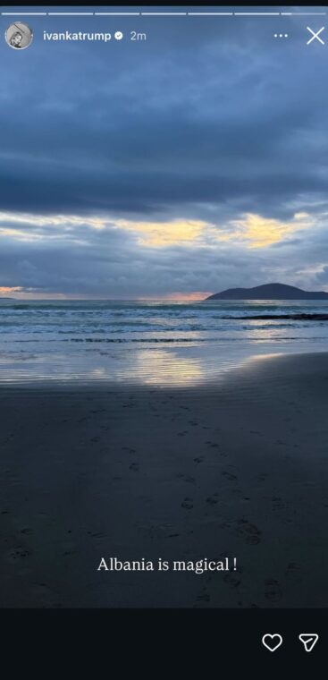 Ivanka ka publikuar një “Instastory” nga bregdeti, ndërsa krahas saj shkruan: “Shqipëria është magjike!”