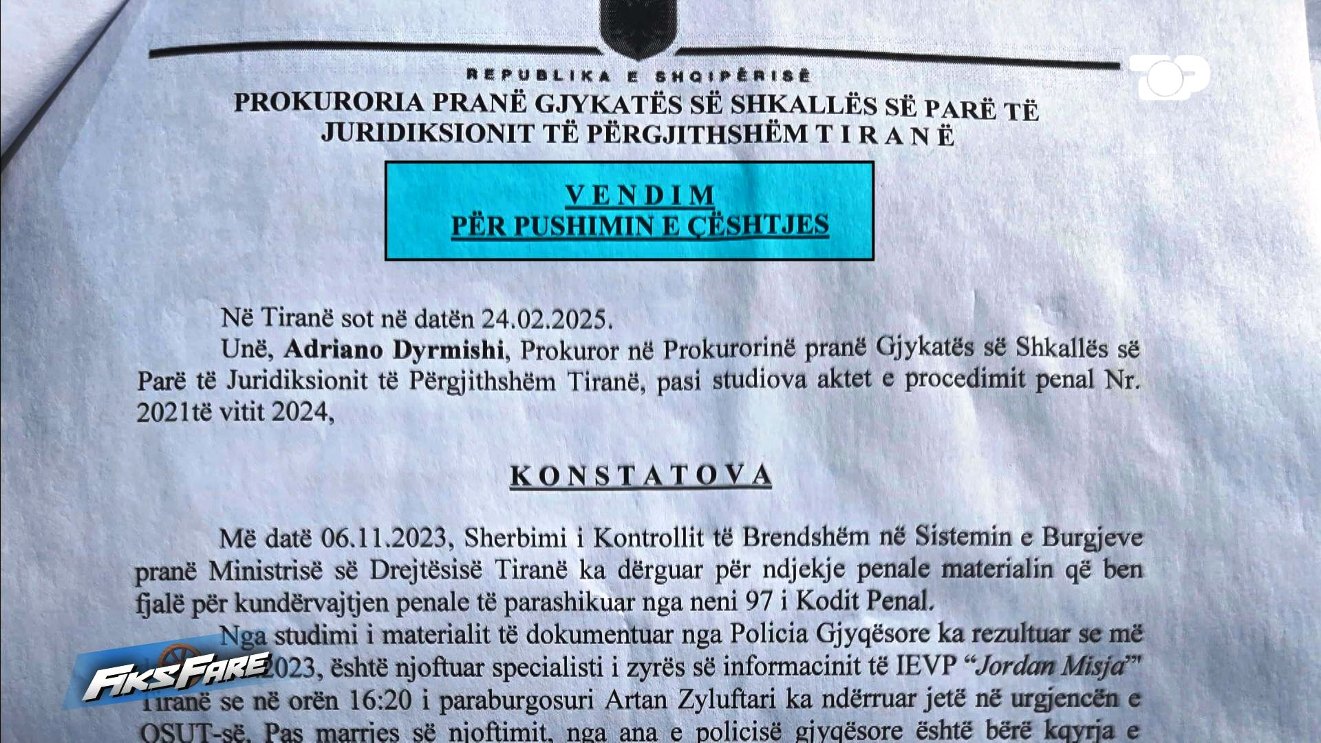 Në vendimin e pushimit, një kopje të së cilit e disponon Fiks Fare, shkruhet se i paraburgosuri Artan Zylyftari ka ndërruar jetë në urgjencën e QSUT-së. Janë pyetur në cilësinë e personit që ka dijeni për rrethana të hetimit, shtetasit Geri Zylyftari, Erlind Zylyftri, Vladimir Binjaku, Lefter Hysenlika, Malik Peposhi dhe Sadete Kushta. Vetë Geri ka deklaruar për Fiksin se vëllai i tij, ka ndërruar jetë në ambientet e burgut dhe jo në spital!