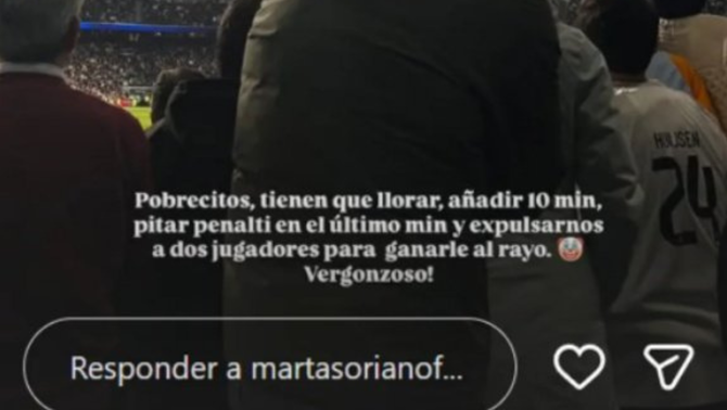 Gruaja e Isit, kapitenit të klubit të njohur të Madridit, ishte më e fortë, duke renditur listën e ankesave me të cilat ata kanë qenë të detyruar të jetojnë në Bernabéu: “E turpshme “, e përmblodhi Marta Soriano në Instagram.