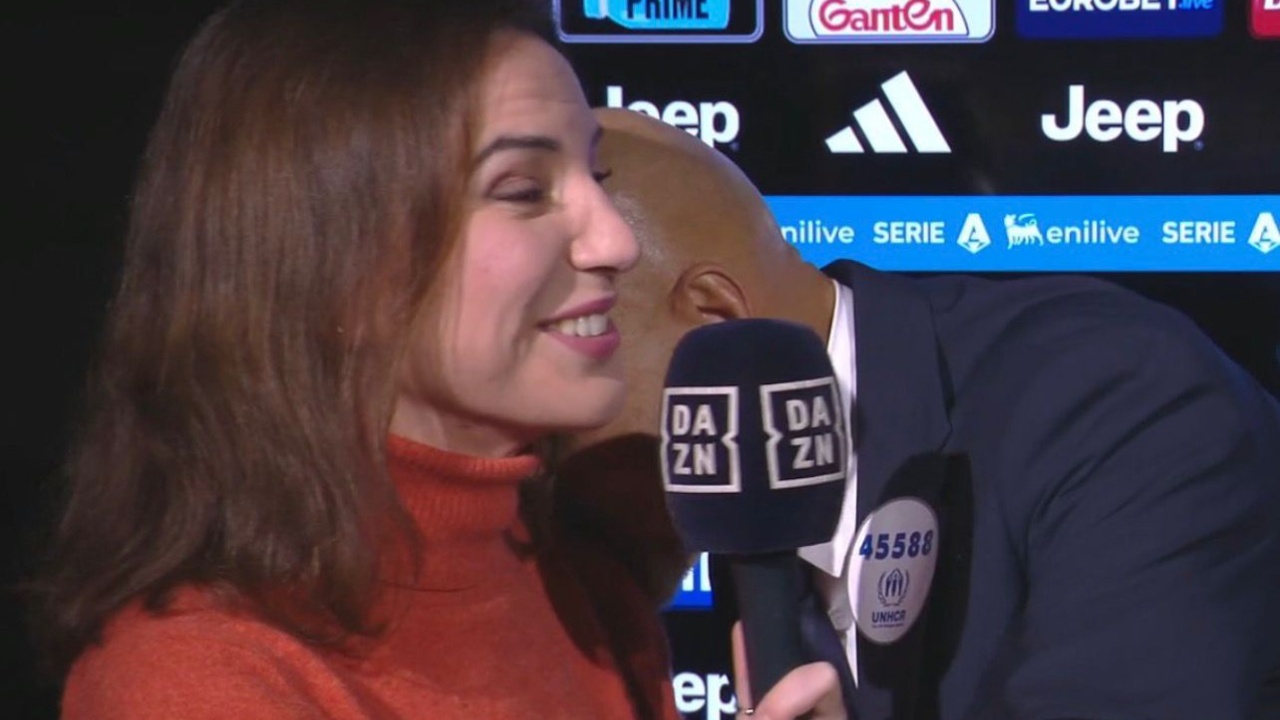 Clamorosa scena a Torino: durante un suo discorso oratorio Luciano Spalletti bacia la giornalista di Dazn Federica Zille