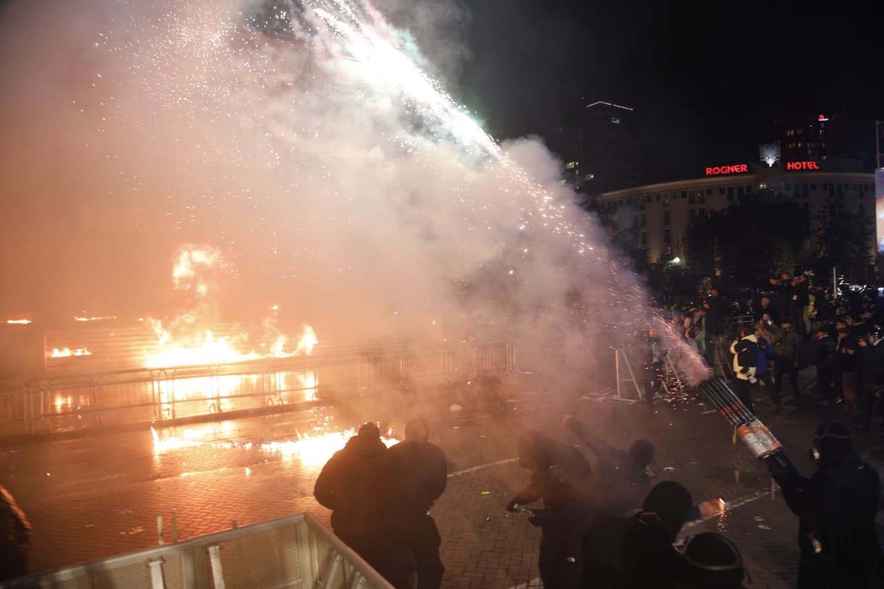 Katër orë protestë para Kryeministrisë dhe Kuvendit/ Hidhen dhjetëra molotovë, policia kundërpërgjigjet me gaz lotsjellës, 16 efektivë të plagosur, deputeti i PD përfundon te Trauma