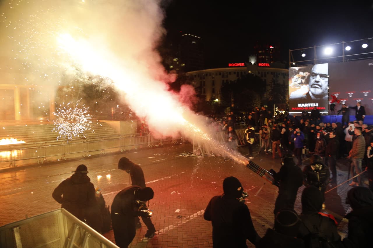 Gazetarja e Top Channel, Elda Menga, përcolli nga vendngjarja pamje të arrestimit të protestuesve, të cilët hodhën sende të forta drejt policisë.