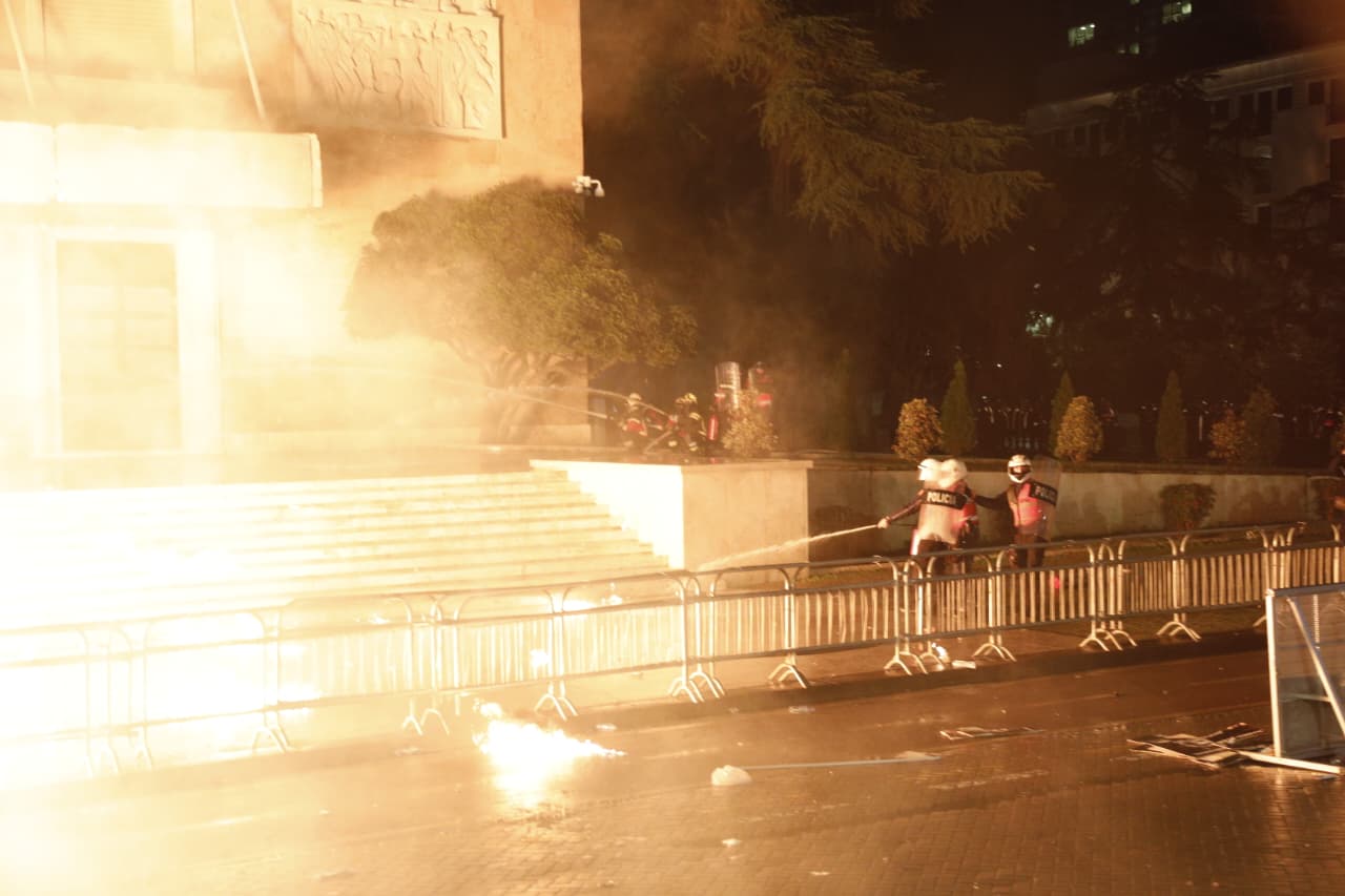 Gazetarja e Top Channel, Elda Menga, përcolli nga vendngjarja pamje të arrestimit të protestuesve, të cilët hodhën sende të forta drejt policisë.