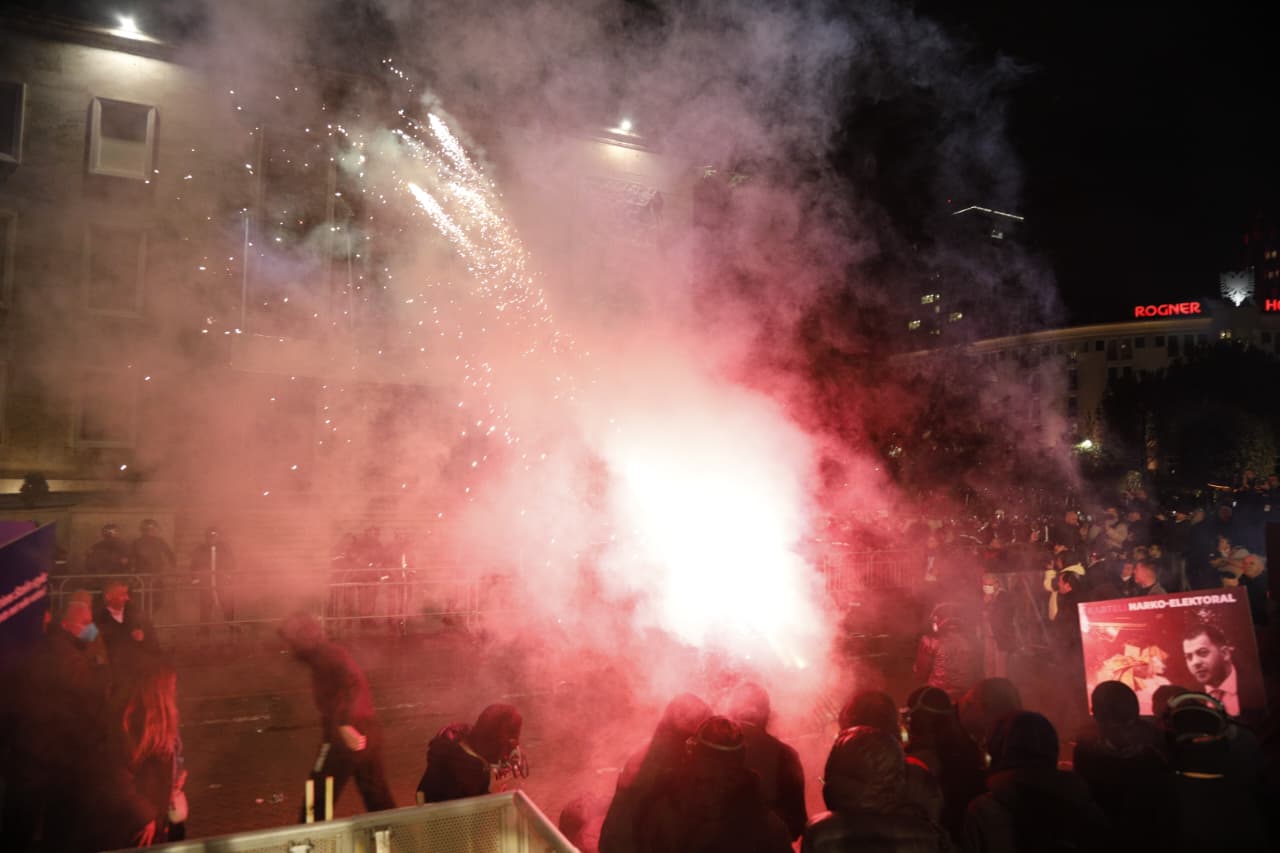 Katër orë protestë para Kryeministrisë dhe Kuvendit/ Hidhen dhjetëra molotovë, policia kundërpërgjigjet me gaz lotsjellës, 16 efektivë të plagosur, deputeti i PD përfundon te Trauma