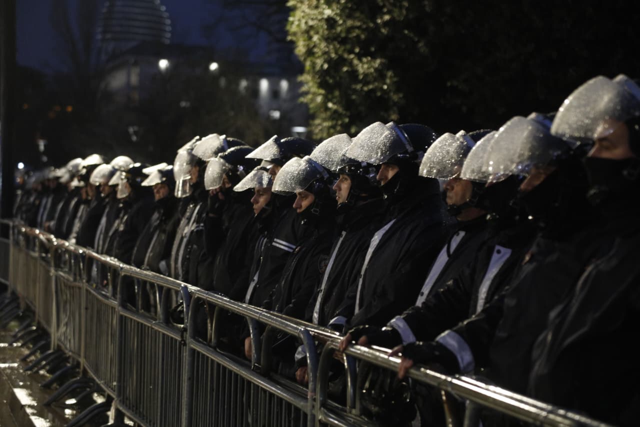 Protesta u shoqërua me hedhje molotovësh dhe lëndësh piroteknike nga protestuesit drejt forcave të rendit, ndërsa policia u kundërpërgjigj me gaz lotsjellës dhe autobotë me ujë.