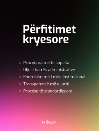Përfitimet kryesore të këtij sistemi janë proceduarat më të shpejta, ulje e barrës administrative, koordinim më i mirë institucional, transparencë më e lartë dhe procese të standardizuara, raporton MIA.