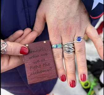 Megjithatë, ajo pati një surprizë shumë të këndshme që erdhi pikërisht në prag të Ditës së Shën Valentinit. Pas përfundimit të garës, i dashuri i saj iu shfaq përpara dhe i ulur në gjunjë i propozoi për martesë, sigurisht duke marrë përgjigje pozitive sic kuptohet edhe nga fotot e postuara në rrjetet sociale teksa në një prej tyre, shihet dora e Johnson me unazë dhe një etiketë ku shkruhej: ‘Kush jemi ne që të luftojmë me alkiminë?’, një frazë që tregon lidhjen dhe dashurinë e fortë të çiftit.