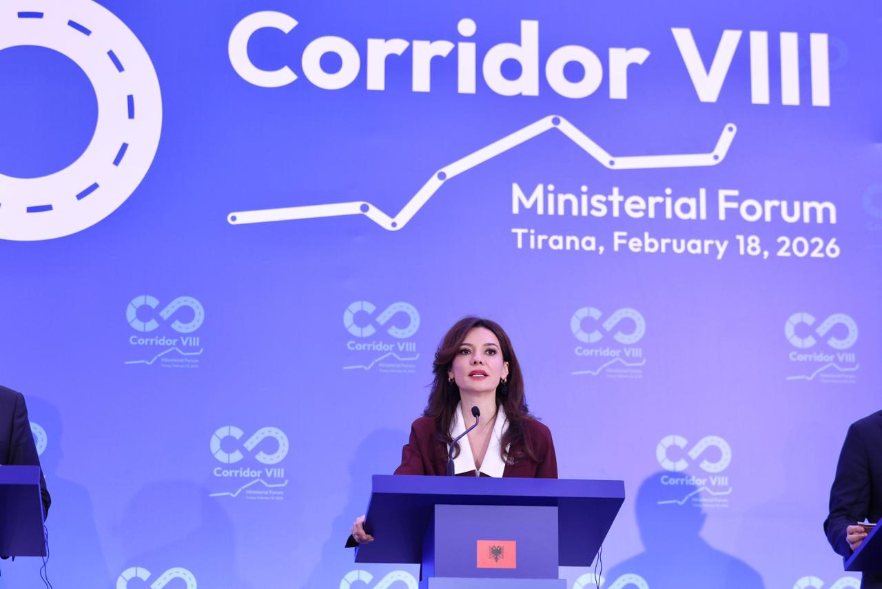 “Ne kemi një portofol projektesh prioritare me vlerë mbi dy miliardë euro dhe shumica e tyre janë tashmë të gatshme për zbatim. Në sektorin hekurudhor, linja Durrës–Rrogozhinë po avancon me financim evropian. Punimet inxhinierike për segmentin pasues drejt Pogradecit kanë nisur. Ndërkohë, linja e re hekurudhore që lidh Tiranën me Durrësin dhe aeroportin ndodhet në fazën përfundimtare të ndërtimit. Në sektorin rrugor, segmentet kryesore nga porti drejt kufirit lindor janë në ndërtim ose në faza të avancuara përgatitore. Në sektorin e energjisë, interkonjeksioni 400-kilovolt me Maqedoninë e Veriut, që ndjek gjurmën e korridorit, është pranë përfundimit. Pra, porta perëndimore e Korridorit VIII nuk është më një ide. Ajo është një paketë projektesh konkrete në terren, me financim, kontrata dhe afate të përcaktuara”, tha ajo.