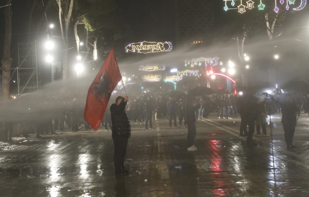 Forcat policore që e kishin rrethuar atë u përgjigjen menjëherë më ujë drejt protestuesve duke i shpërndarë ata.