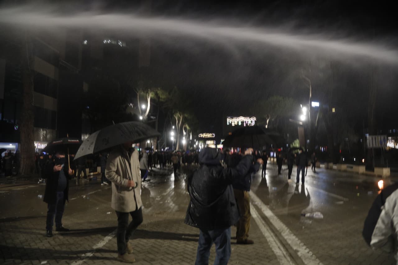 Forcat policore që e kishin rrethuar atë u përgjigjen menjëherë më ujë drejt protestuesve duke i shpërndarë ata.