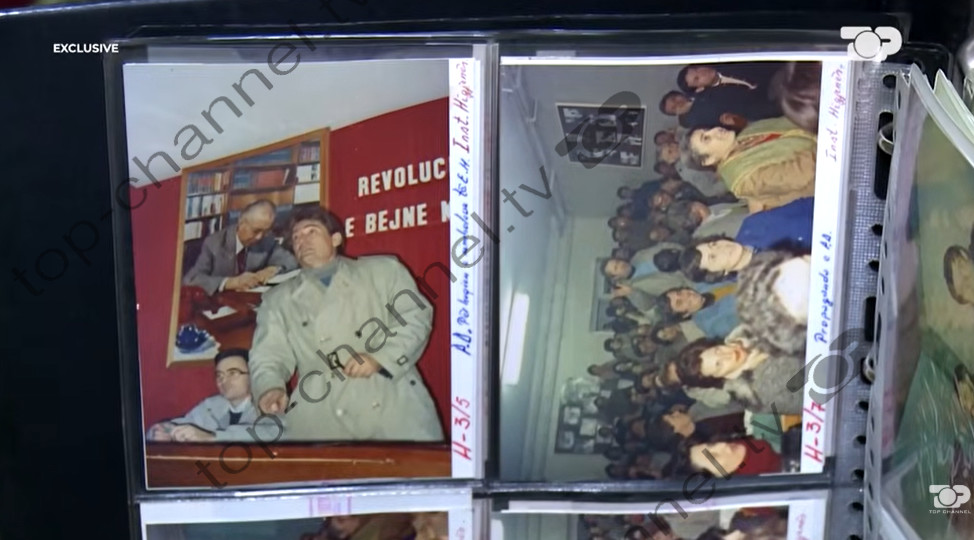 Historike është gjithashtu edhe fotografia e Berishës duke folur në një nga qendrat e punës në Tiranë dhe në sfond ishte vendosur fotografia e Enver Hoxhës.
