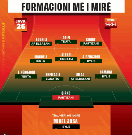 Java e 25 e Kategorisë Superiore u mbyll këtë të dielë me ndeshjet mes Tiranës dhe Teutës dhe Flamurtarit e Partizanit. Në përfundim të kësaj jave është përzgjedhur formacioni dhe trajneri më i mirë, një përzgjedhje që është bërë nga trajnerët e ekipeve kombëtare të moshave