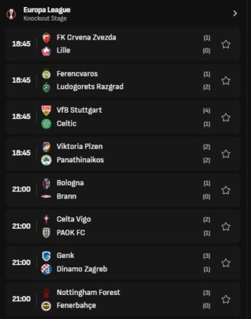 Bologna pret Bran (1-0), ndërsa Celta Vigo sfidon PAOK (2-1). Interesante do të jetë edhe përballja Genk – Dinamo Zagreb, me këto të janë mposhtur 3-1 në sfidën e parë dhe mbyll mbrëmjen dueli mes Nottingham – Fenerbahces (3-0).