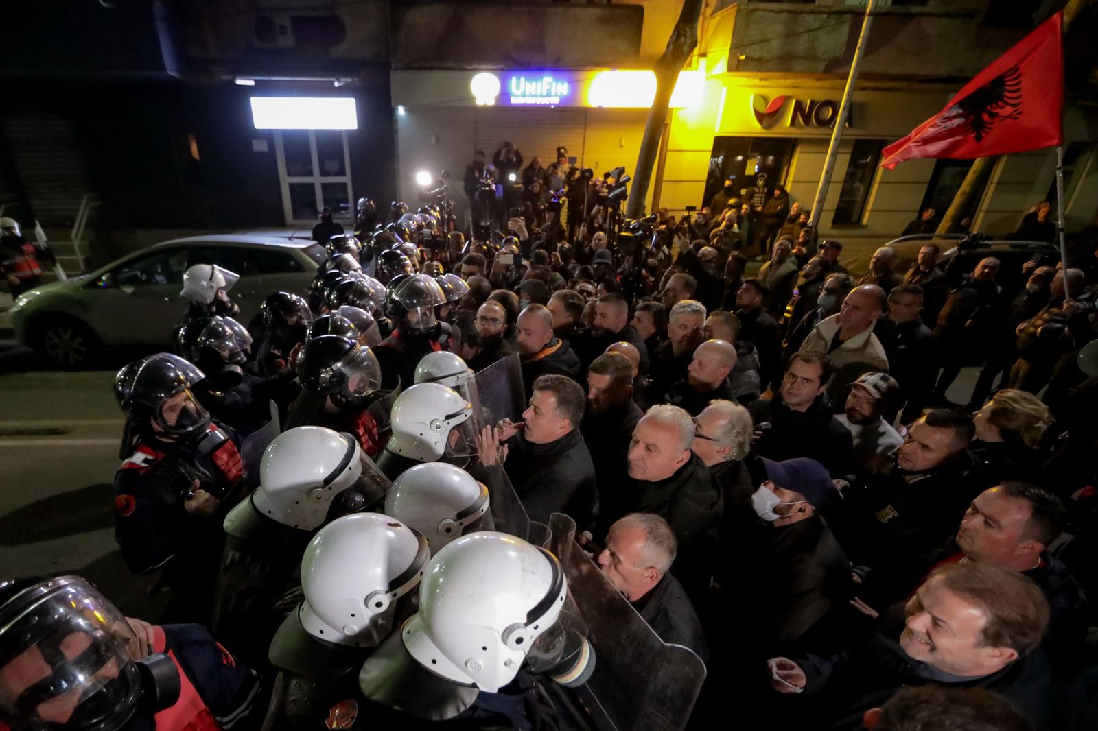 Protestuesit dhe deputetët e PD kanë tentuar që të çajnë kordonin e policisë për të vijuar marshimin drejt ambienteve të Policisë së Shtetit.