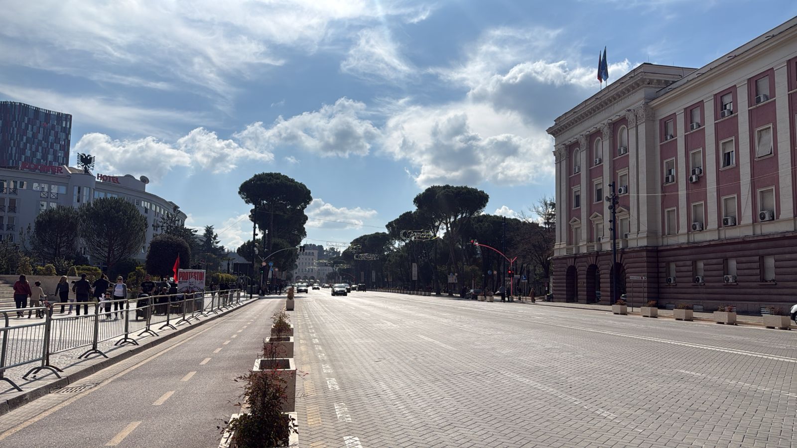 Ndryshe nga protestat e mëparshme në Bulevardin Dëshmorët e Kombit qarkullimi i automjeteve vijon normalisht, ndërkohë që organizatorët e protestës së PD nuk kanë vendosur podium.