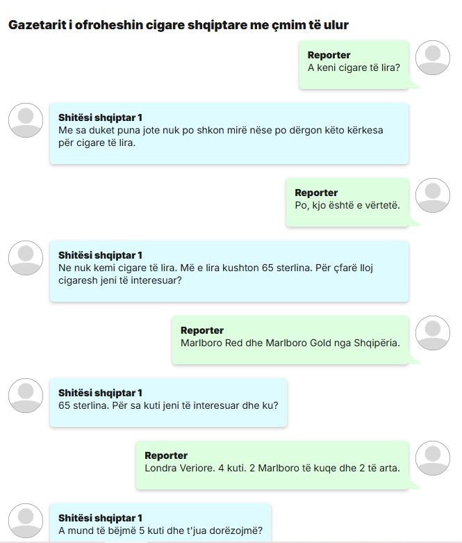 Një llogari në TikTok dhe Facebook ka vepruar nën një emër që përkthehet përafërsisht si “paketa cigaresh shqiptare” dhe ofron cigare nga Greqia dhe Shqipëria për dërgesë në shtëpi.