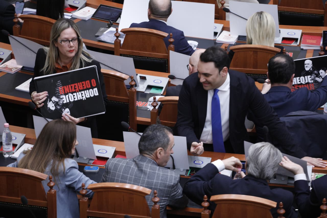 Pas rrëzimit të kërkesës së SPAK në sallë deputetët e PD-së bllokuan foltoren duke shprehur kundërshtinë e tyre, ndërsa jashtë sallës tubuesit u përplasën me policinë.