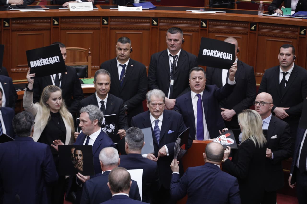 Pas rrëzimit të kërkesës së SPAK në sallë deputetët e PD-së bllokuan foltoren duke shprehur kundërshtinë e tyre, ndërsa jashtë sallës tubuesit u përplasën me policinë.