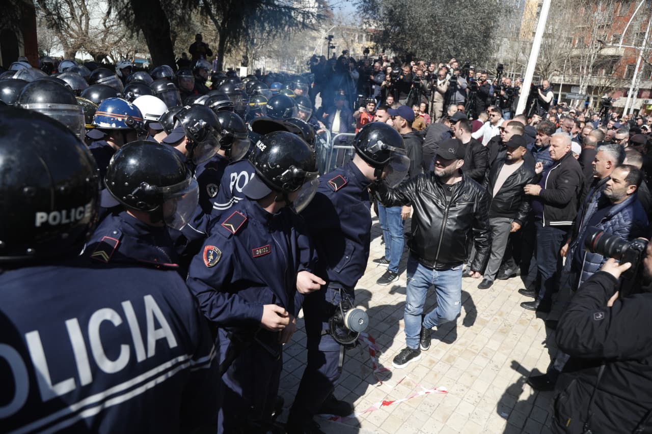 Ata tentuan që të thyenin kordonin e policisë duke hedhur drejt tyre sprej dhe tymuese në ngjyrë blu. Pak çaste më vonë, edhe protesta u shpërnda duke njoftuar se e radhës do të mbahet më 22 mars.