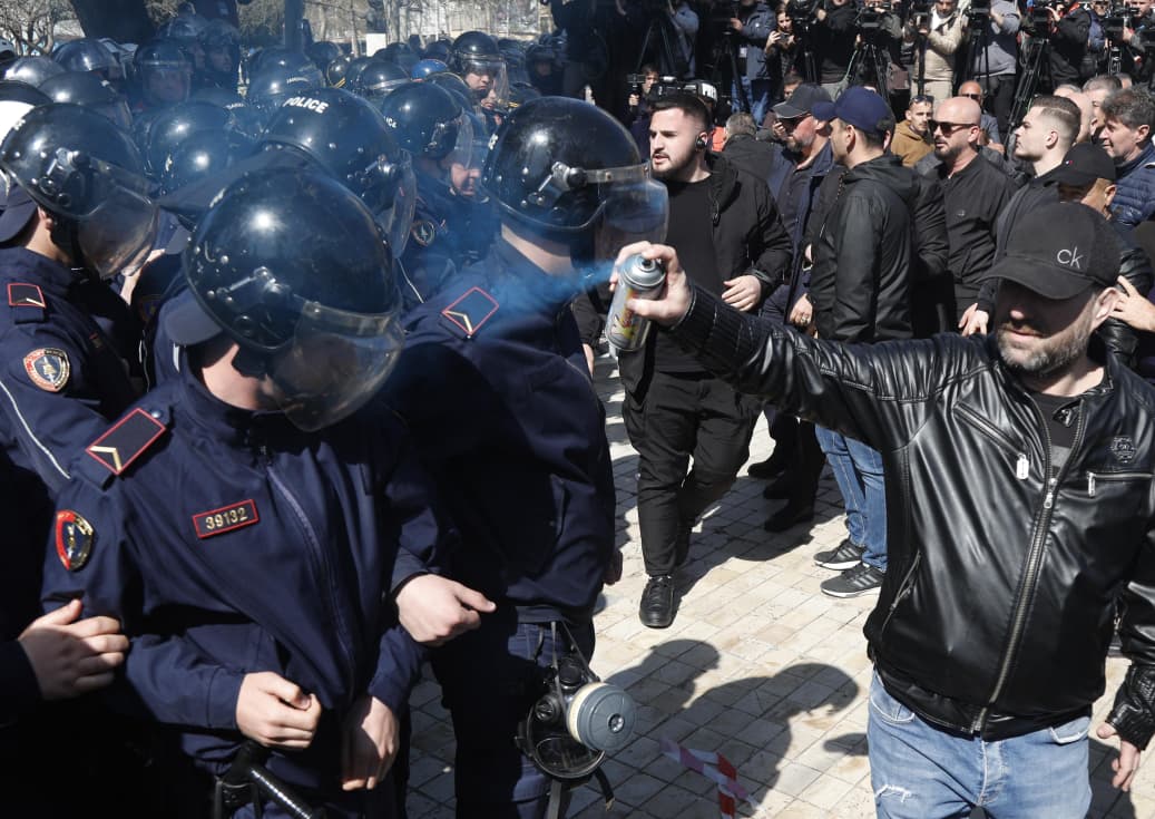 Ata tentuan që të thyenin kordonin e policisë duke hedhur drejt tyre sprej dhe tymuese në ngjyrë blu. Pak çaste më vonë, edhe protesta u shpërnda duke njoftuar se e radhës do të mbahet më 22 mars.