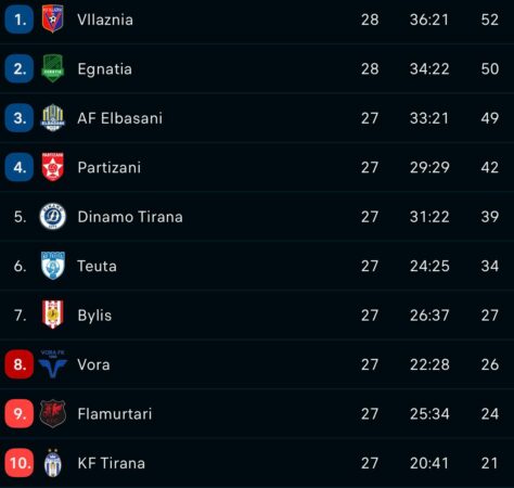 Java e 28-të vijon të shtunën me dy përballje: Tirana-Bylis dhe Flamurtari-Egnatia. Java mbyllet të dielën me sfidat Vora-Partizani dhe Dinamo-Teuta, të cilat mund të ndryshojnë ndjeshëm renditjen e skuadrave kryesuese.