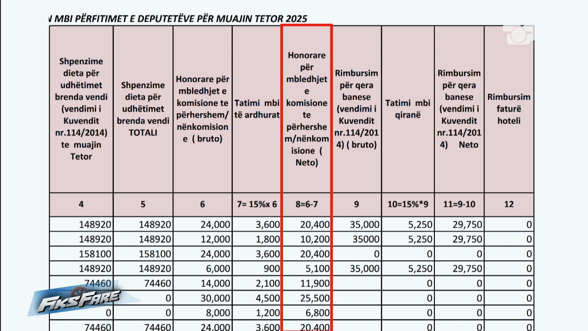 Fiks Fare ka hulumtuar dokumentet zyrtare të Kuvendit të Shqipërisë, për pagat dhe përfitimet, të muajve tetor, nëntor e dhjetor 2025 si dhe të muajit janar 2026. Krahas pagës, e cila është 310 mijë lekë, deputetët marrin edhe përfitime të tjera.