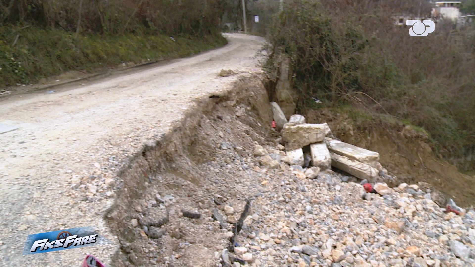 Pamjet tregojnë një rrugë të ngushtuar ndjeshëm, ku aktualisht mezi kalon një automjet, pasi një pjesë e konsiderueshme e saj ka rrëshqitur. Banorët shprehen se problemi ka disa muaj që është shfaqur dhe situata vetëm sa është përkeqësuar, duke rritur frikën për një aksident të mundshëm.