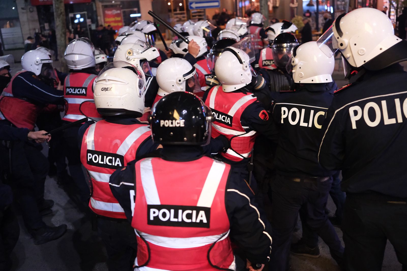 LIVE/ PD 3 orë protestë me molotovë, fishekzjarre dhe flamurin gjerman. Berisha lëndohet me spray në sy. 6 efektivë të policisë të plagosur