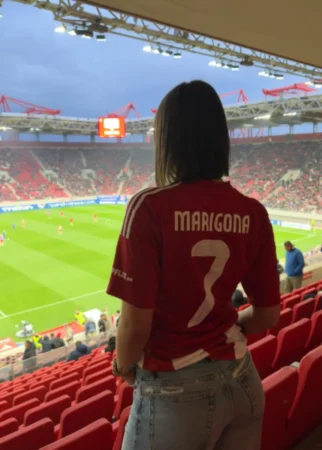 Modelja shqiptare tërheq vëmendjen e stadiumit Karaiskakis të Olympiacos, prania e saj ishte “goli” i vetëm i ndeshjes