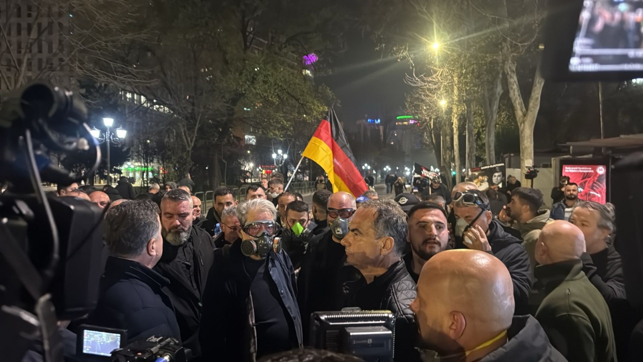 Gazetarja e Top Channel Elda Menga raporton se kryedemokrati ndodhet poshtë banesës së tij, së bashku me disa mbështetës.