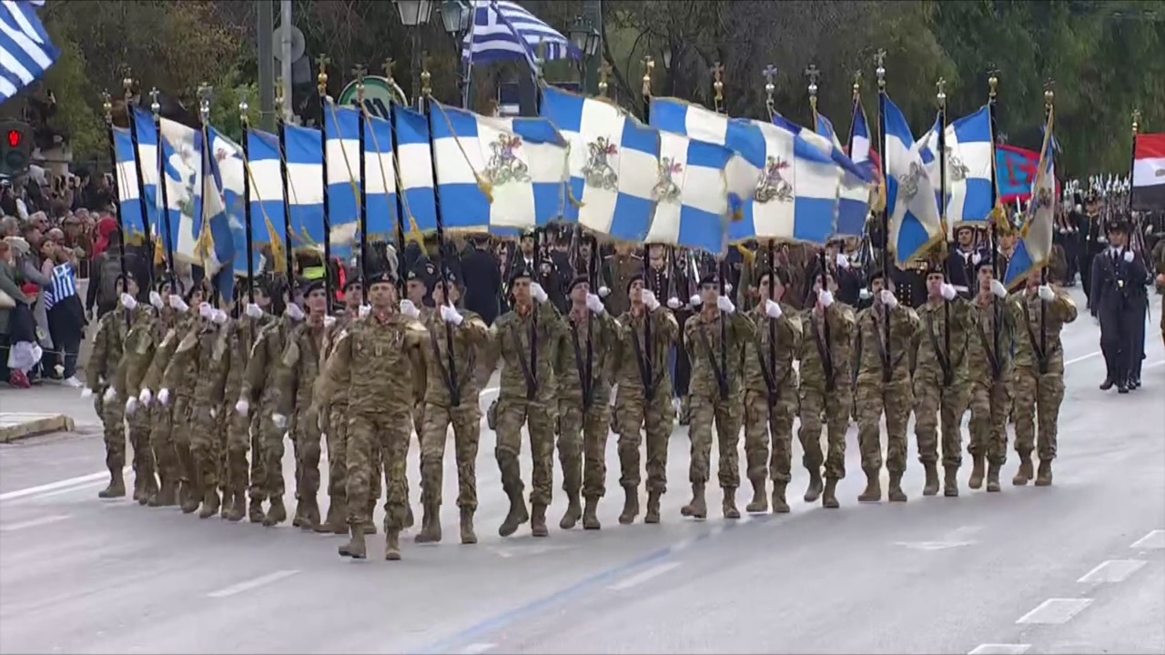 Me pas në prani të udhëheqjes shtetërore, politike dhe ushtarake, si dhe mijëra qytetarëve, Forcat e Armatosura dhe forcat e sigurisë parakaluan në Sheshin Sintagma, në një paradë madhështore ushtarake.