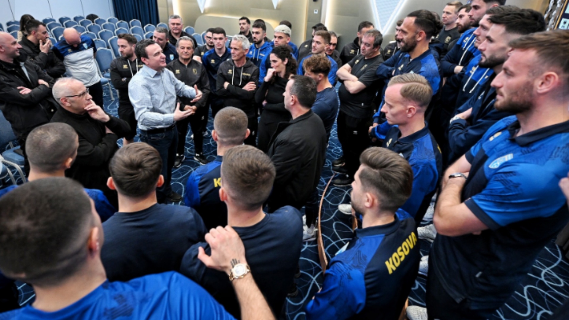Kryeministri i Kosovës, ditën e dielë vizitoi skuadrën e drejtuar nga Franco Foda për t’i inkurajuar në këtë përballje të madhe ndaj skuadrës së Vincenzo Montellës. Në këtë takim, Kurti iu tha futbollistëve dhe stafit teknik të Dardanëve se kjo është mundësia që Kosova dhe historia e saj e qëndresës dhe talentit të shfaqet në sytë e mbarë botës. Ai shtoi se pas kësaj skuadre është jo vetëm një shtet, por një komb i tërë, janë tifozët në stadium, janë familjarët, janë qytetarët në çdo banim, fshat e qytet dhe janë të gjithë shqiptarët kudo në botë.