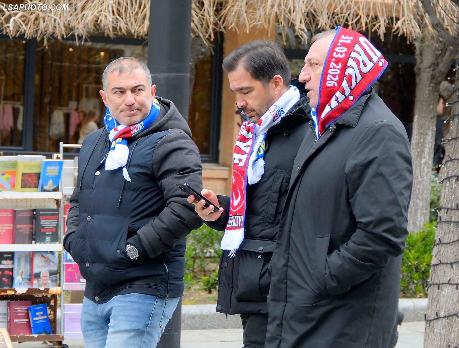 Përpara sfidës, tifozët shqiptarë dhe ata turq janë bërë bashkë, duke festuar dhe duke shkëmbyer flamujt dhe fanellat.
