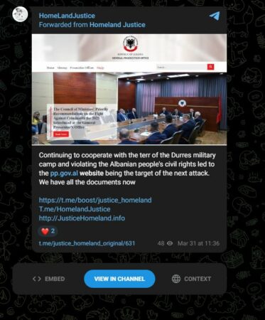 Grupi i hakerave “Homeland Justice”, pas Kuvendit të Shqipërisë dhe Postës Shqiptare, pretendon se sot kanë sulmuar edhe sistemet e Gjykatës së Lartë dhe Prokurorinë e Përgjithshme në Shqipëri.