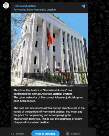 “Kemi marrë të dhënat”, grupi “Homeland Justice” pretendon se ka kryer sulm kibernetik në sistemet e Gjykatës së Lartë dhe Prokurorinë e Përgjithshme