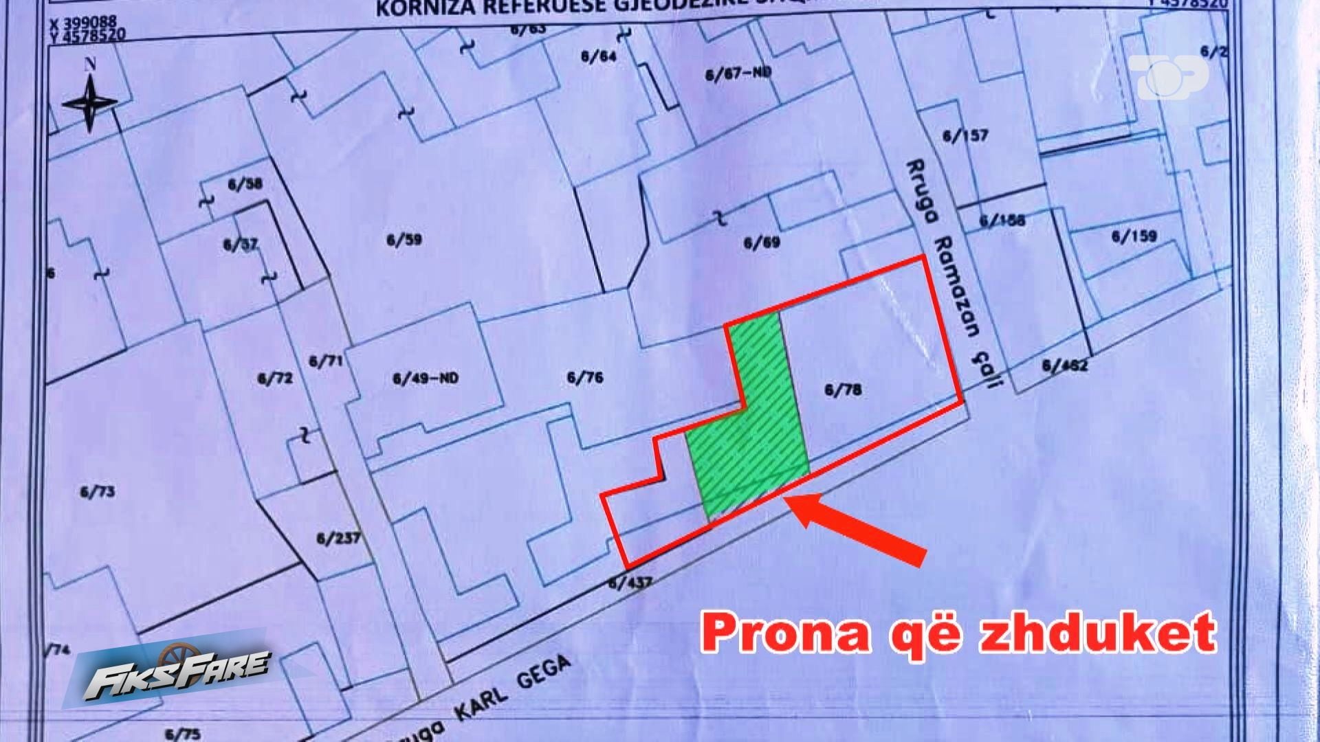 Në aktin e ekspertimit, eksperti e njeh pronarin Ganiu si kufitar në lindje, por në skicën shoqëruese, prona e tij nuk pasqyrohet fare. Ky kontrast mes përshkrimit dhe hartës, sipas qytetares, ka bërë që institucioni i kadastrës të mos e njohë më këtë pronë, duke e kaluar atë në emër të personit që kishte blerë pronat kufitare.