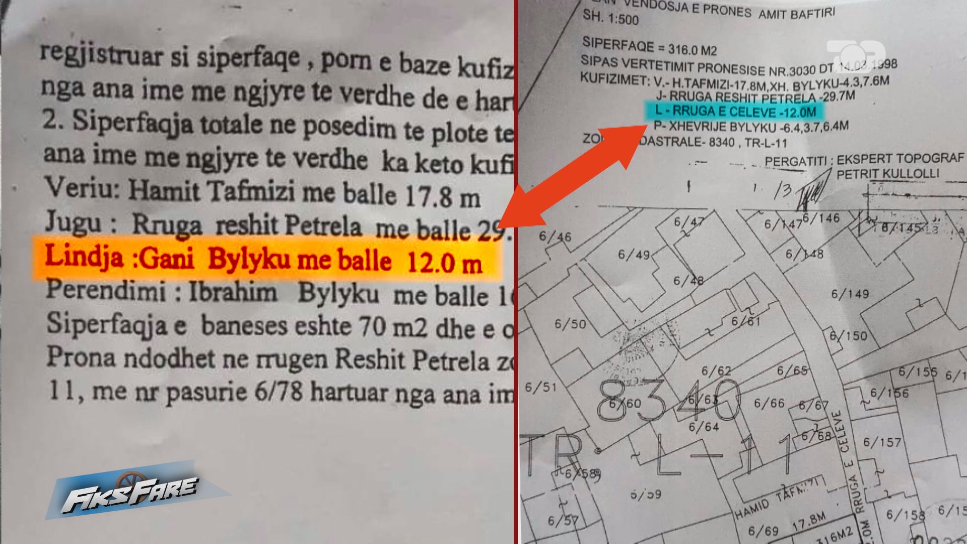 Në aktin e ekspertimit, eksperti e njeh pronarin Ganiu si kufitar në lindje, por në skicën shoqëruese, prona e tij nuk pasqyrohet fare. Ky kontrast mes përshkrimit dhe hartës, sipas qytetares, ka bërë që institucioni i kadastrës të mos e njohë më këtë pronë, duke e kaluar atë në emër të personit që kishte blerë pronat kufitare.