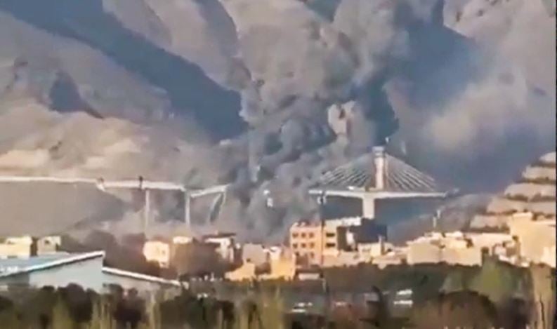 Footage of a US/Israeli airstrike on the B-1 road bridge in the Iranian city of Karaj today.