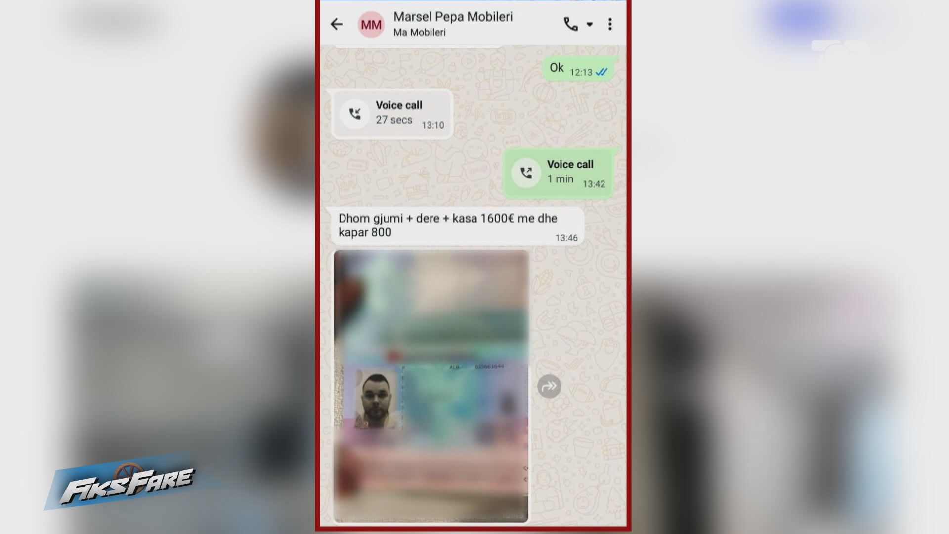 Ai shton se, data ka qenë 5 tetor 2025. “Më dërgon foton e pasaportës dhe më shkruan që puna bën 1600 euro dhe 800 mori kapar. Unë mobiliet do t’i merrja për 20 ditë. Kam toleruar dhe i thashë nga fillimi i dhjetorit. Dhe sot që flasim as mobiliet dhe as lekët skam marrë. Mobiliet i bleva diku tjetër. Unë i bie të kem rënë pre e një mashtrimi”, pohon i riu.
