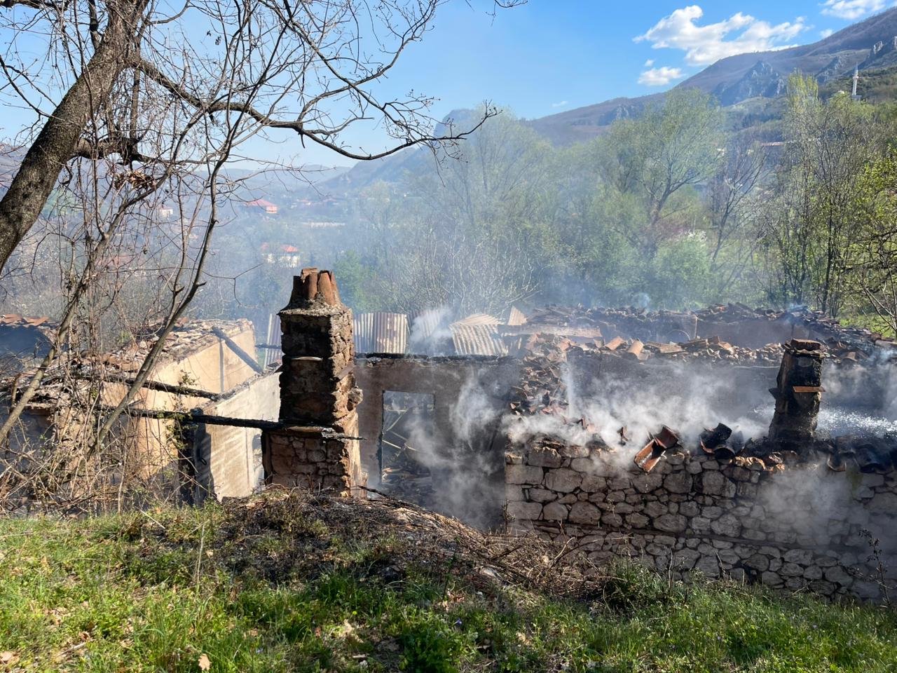 Në fshatin Buzgarë, njësia Hotolisht ku u dogj një sipërfaqe me shkurte dhe u rrezikua edhe një banesë.