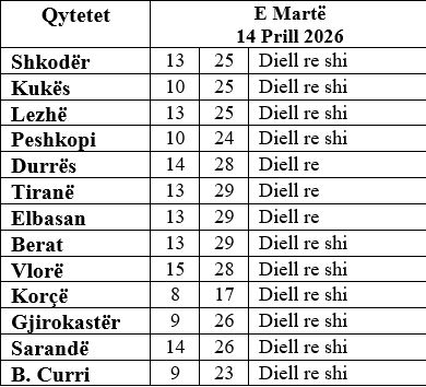 Reshjet e shiut lokale me intensitet të ulët parashikohen të jenë prezente vetëm në zonat veriore.